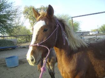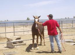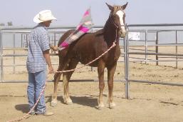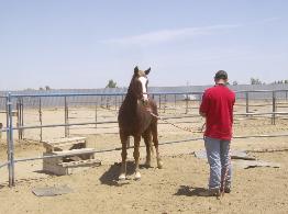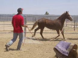 | During Flash's first trip to the round pen he learned how to lounge, reverse, give "two eyes" and stated his desentizing. |